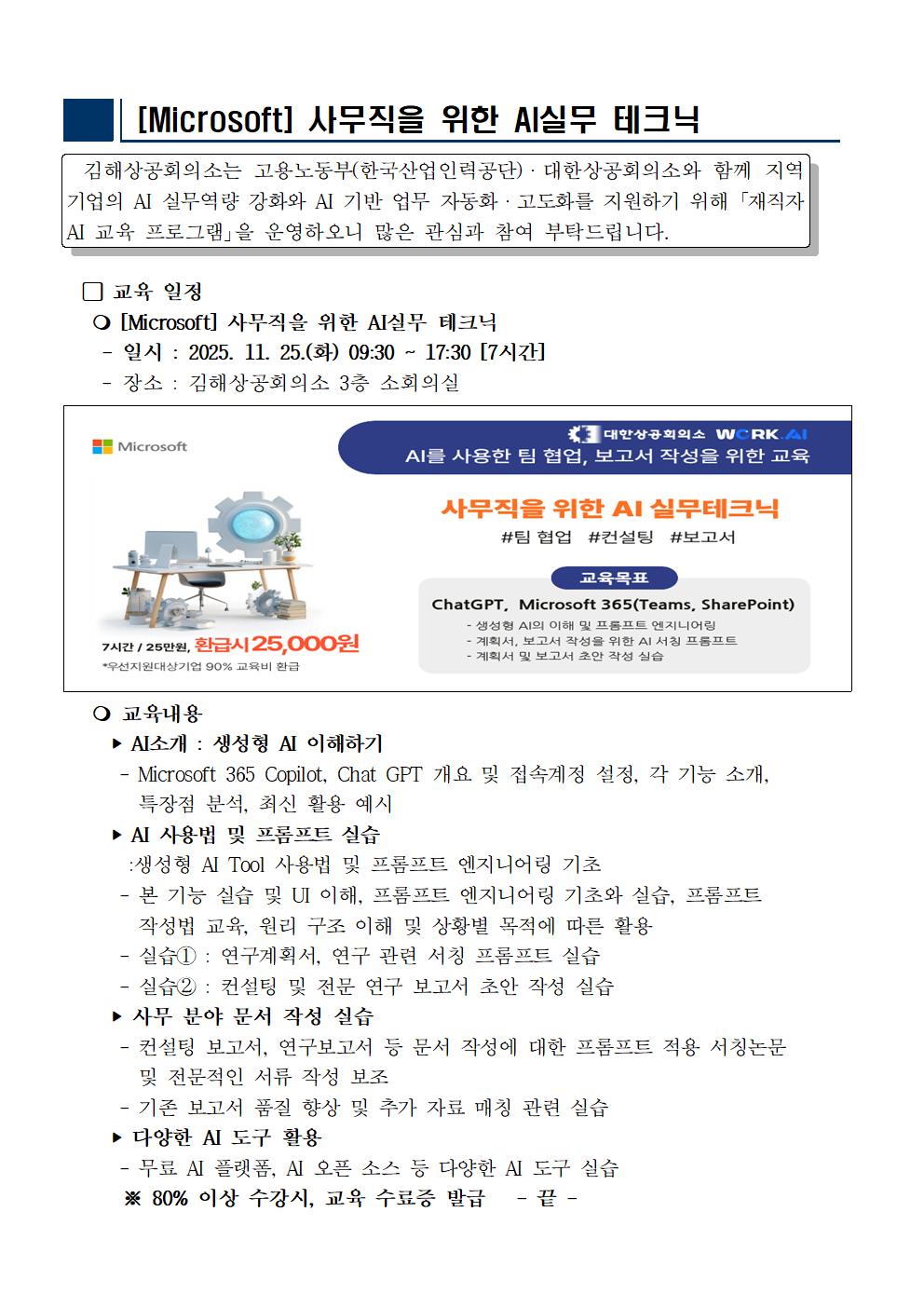 | 제목 | [재직자 AI교육] 사무직을 위한 AI실무 테크닉 | ||