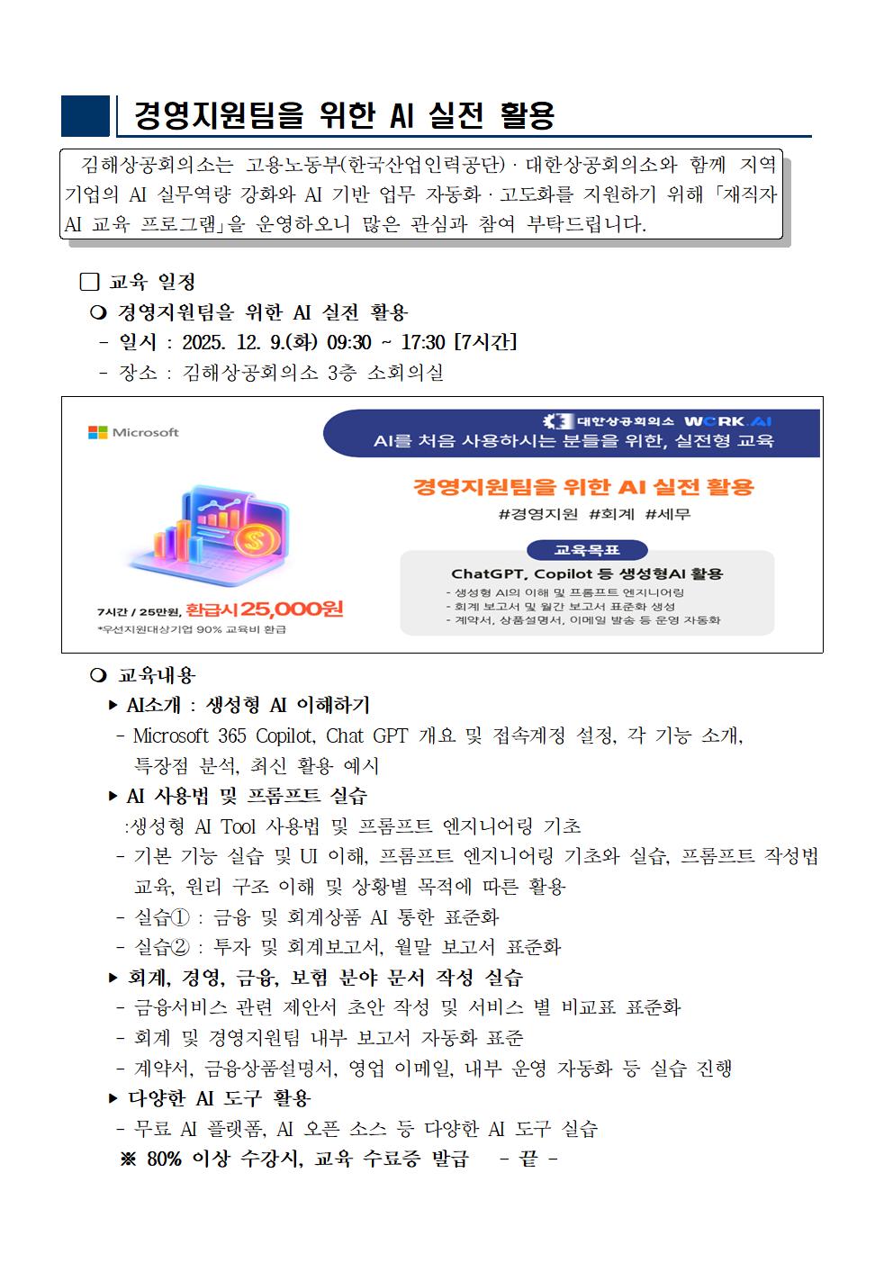 | ‒ | [재직자 AI교육] 경영지원팀을 위한 실전 AI 활용 |