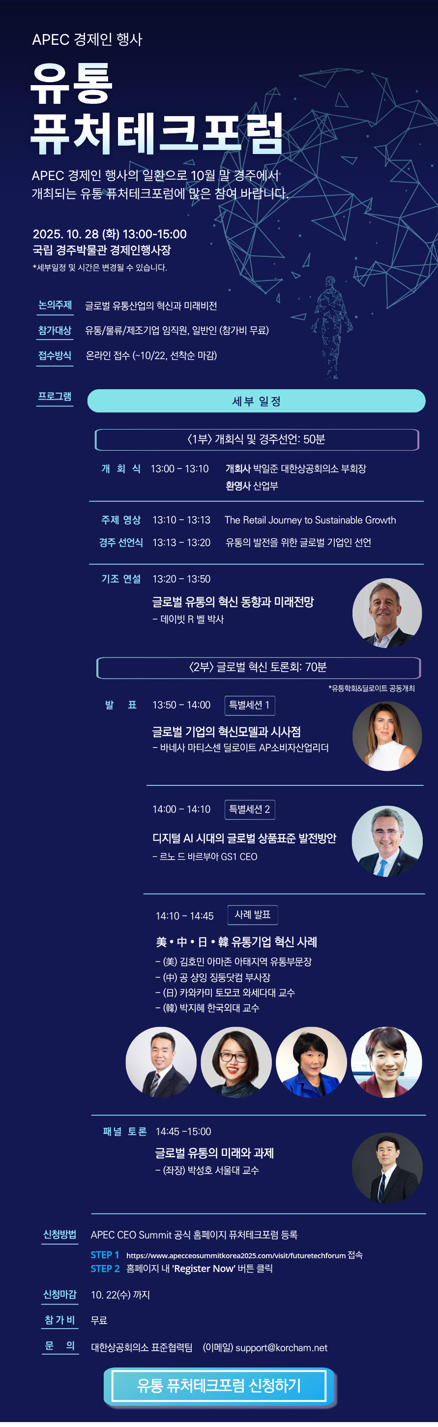 | ‒ | APEC 경제인 행사 『유통 퓨처테크 포럼(FutureTech Forum)』참여 신청 안내 |