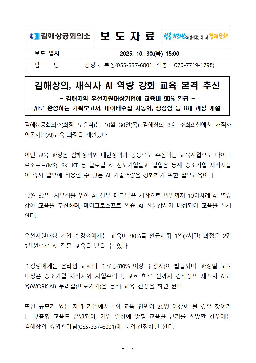 | ‒ | 김해상의, 재직자 AI 역량 강화 교육 본격 추진 |