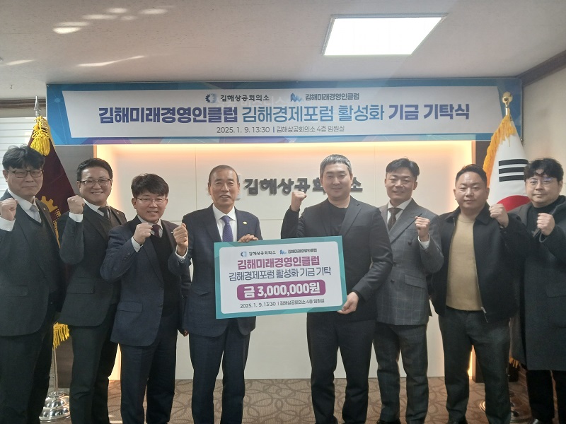 이날 기탁식에서 김해미래경영인클럽은 김해경제포럼 활성화 지원금 300만원을 김해상공회의소에 전달했으며, 지원금은 김해경제포럼의 콘텐츠 고도화와 지역 기업인 참여 확대를 위해 활용될 예정이다.